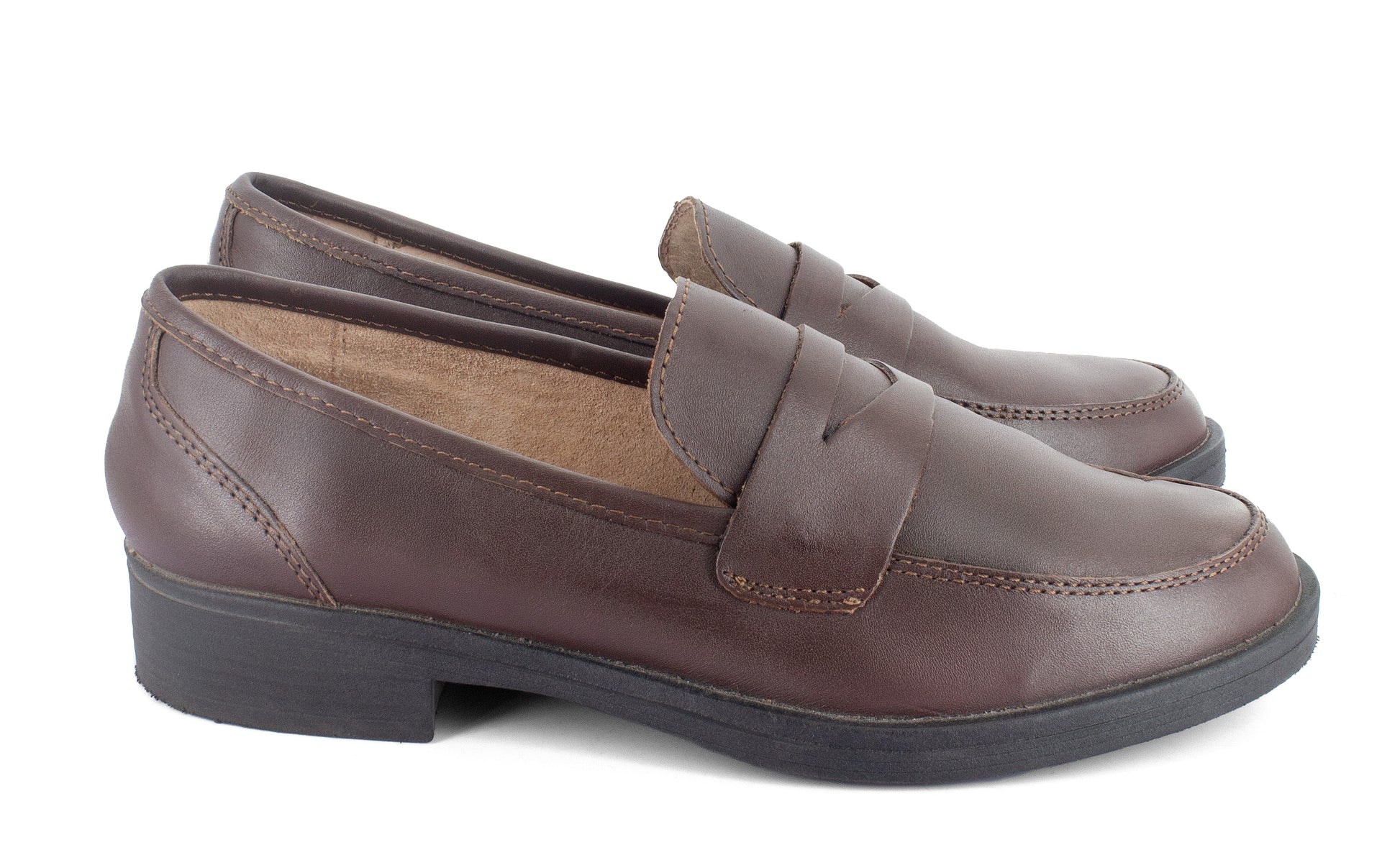 Mocasín de piel café suela delgada